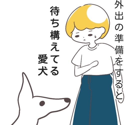 こーちゃんは以前から私や夫が出かける準備をしていると引き留めるために玄関まで来ていたのですが、今でも健在。