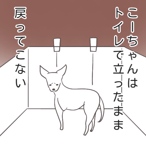 トイレから戻って来ないので見守ってますが、助けを求める様に鳴くので側に行ってあやしてます。