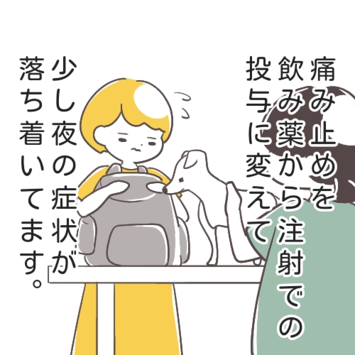こーちゃんの痛み止めを飲み薬から月一回の注射での投与に変更しました。